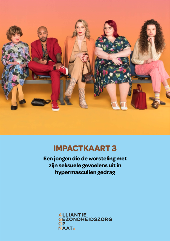 In een impactkaart wordt een heel concreet voorbeeld uitgewerkt van een casus waarbij in de gezondheidszorg onvoldoende of geen rekening is gehouden met gender en/of seksuele oriëntatie. De impactkaart maakt op visuele wijze inzichtelijk welke maatschappelijke gevolgen dit heeft, met name door te laten zien wie / welke partijen in beweging moeten komen als gevolg van ‘niet-juist’ handelen.